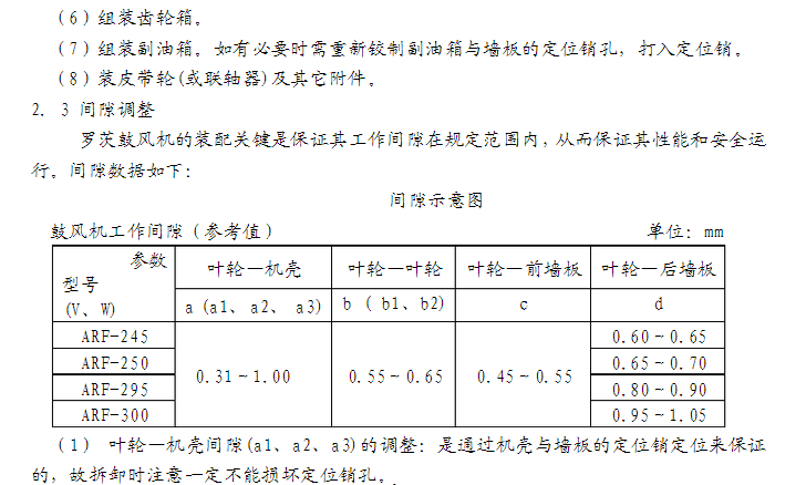 2.1 介質中微粒雜質含量不得超過100mg/m3,**大微粒尺寸不得超過鼓風機工作間隙表規定的**小工作間隙的一半。