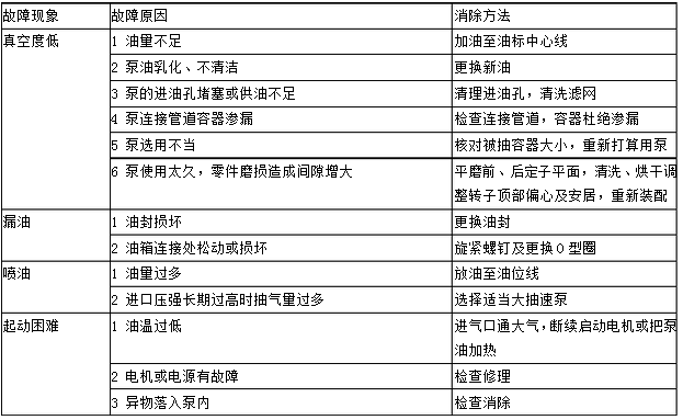 5 若抽除的氣體含有大量水蒸氣、溫度過高及含有塵埃等,應在進氣口管道上加冷卻器、過濾器等相應的裝置,以免影響泵的正常使用 六、故障排除