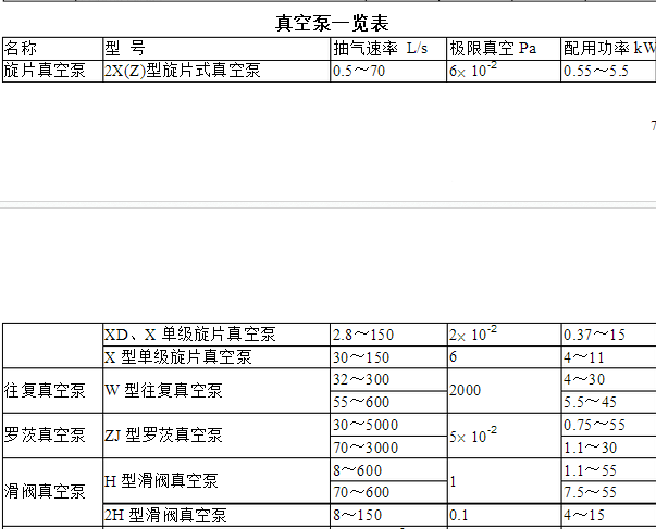 泵的類型主要由工作所需的氣量、真空度或排氣壓力而定。